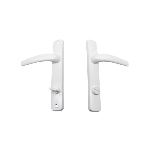 The white handle, with two mounting holes on one and no holes on the other, has a simple overall design and is used to control the opening and closing of doors and windows.